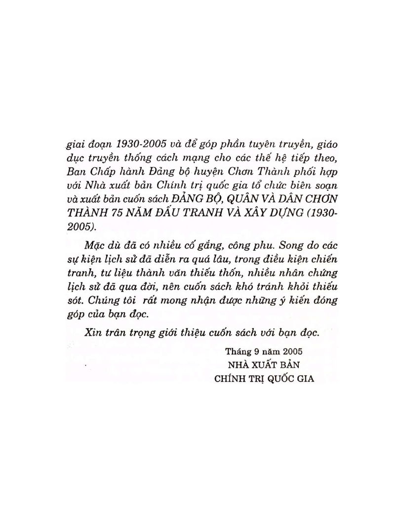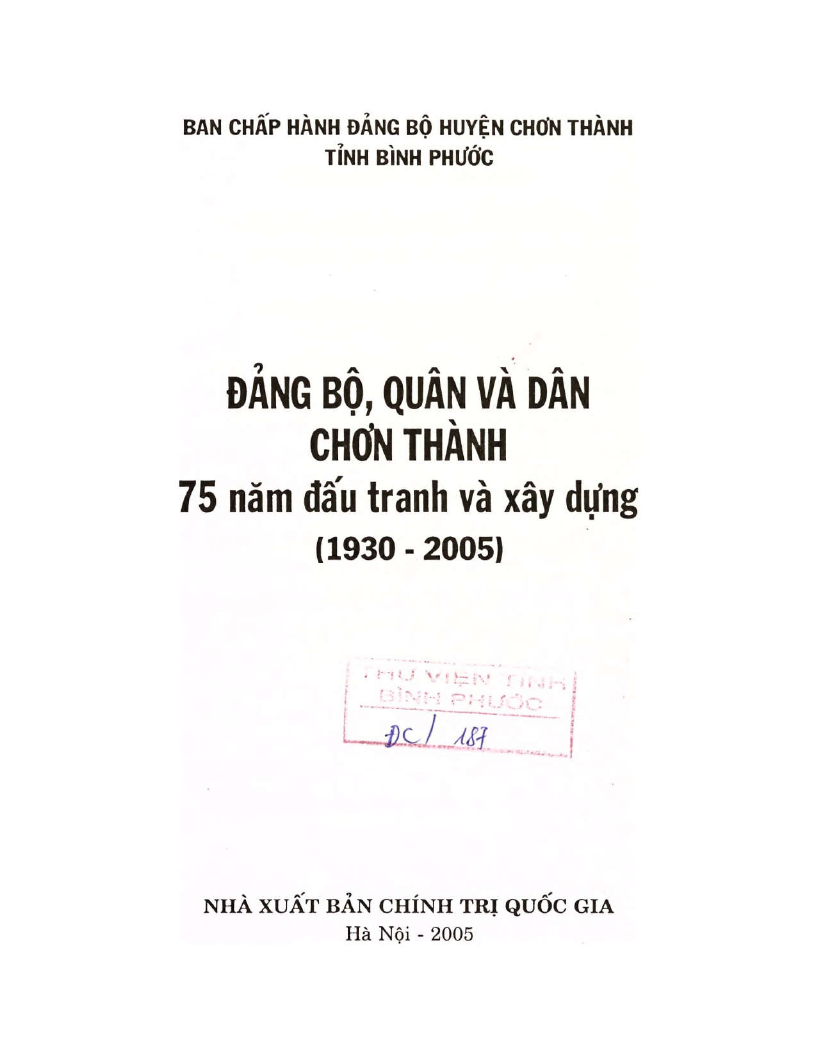 |  | DANG BO QUAN VA DAN CHON THANH 75 NAM DAU TRANH VA XD 1930 2005 |